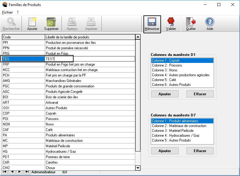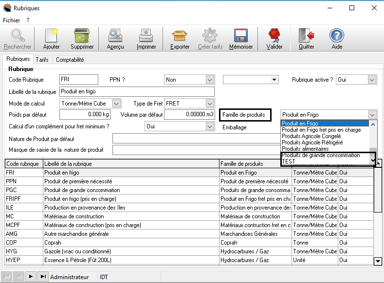 - Se rendre à l'adresse suivante : Paramétrages > Fret & Billeterie > Familles de produits