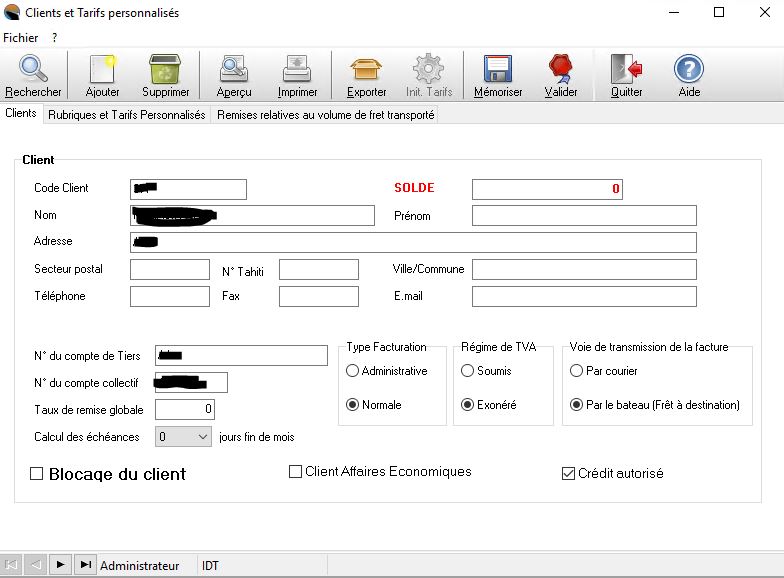 La création d'un client comptant est obligatoire. Il permet de renseigner un client divers au moment de la saisie d'un connaissement.