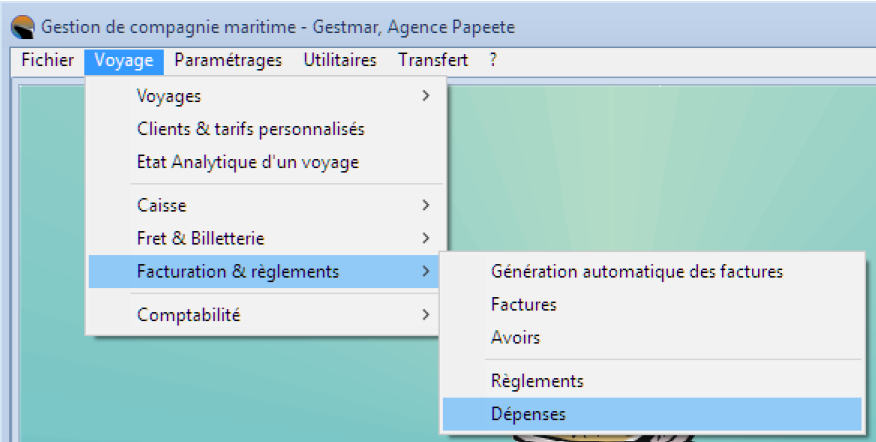 Accéder aux dépenses depuis le menu Voyage > Facturation & règlements > Dépenses