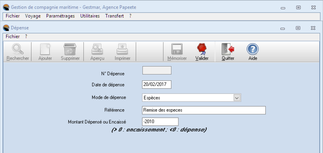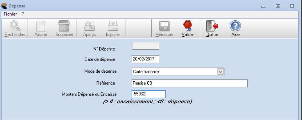 Note : Si par erreur, un montant positif est saisi, il suffit de faire une dépense avec le montant inverse.