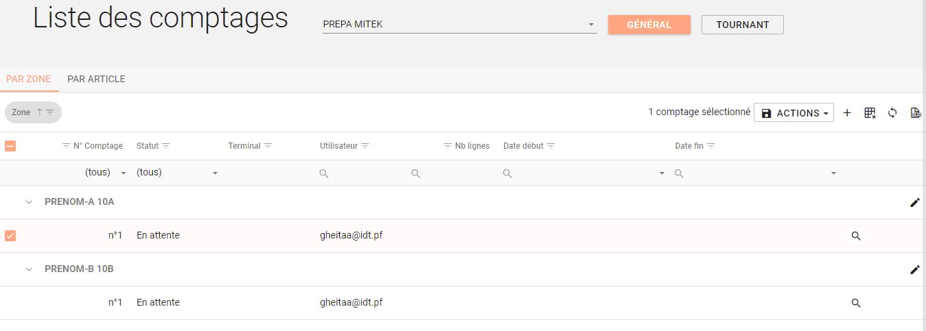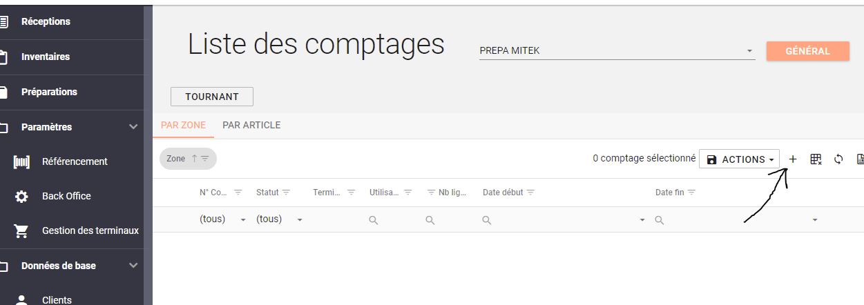 | Intitule | Ce champ permet d'apporter des précision sur le comptage. Généralement, on renseigne le nom de la personne et/ou la zone |