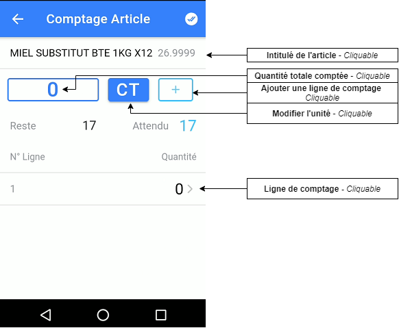 - Ouvrir le comptage d'un article (afin de saisir la quantité), 2 options :