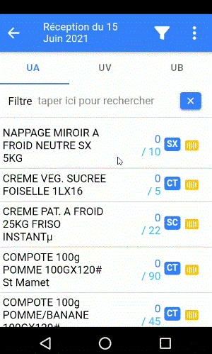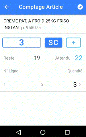 - Pour modifier une ligne déjà saisie, il faut appuyer sur celle-ci (ne pas utiliser le scan)