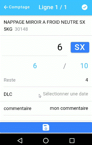 L'enregistrement de la saisie nécessite une action de votre part, quelque soit le champ modifié (quantité, commentaire, zone, DLC, etc.)
