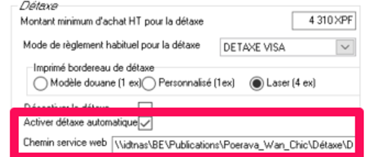 - Cocher l'option Activer détaxe automatique