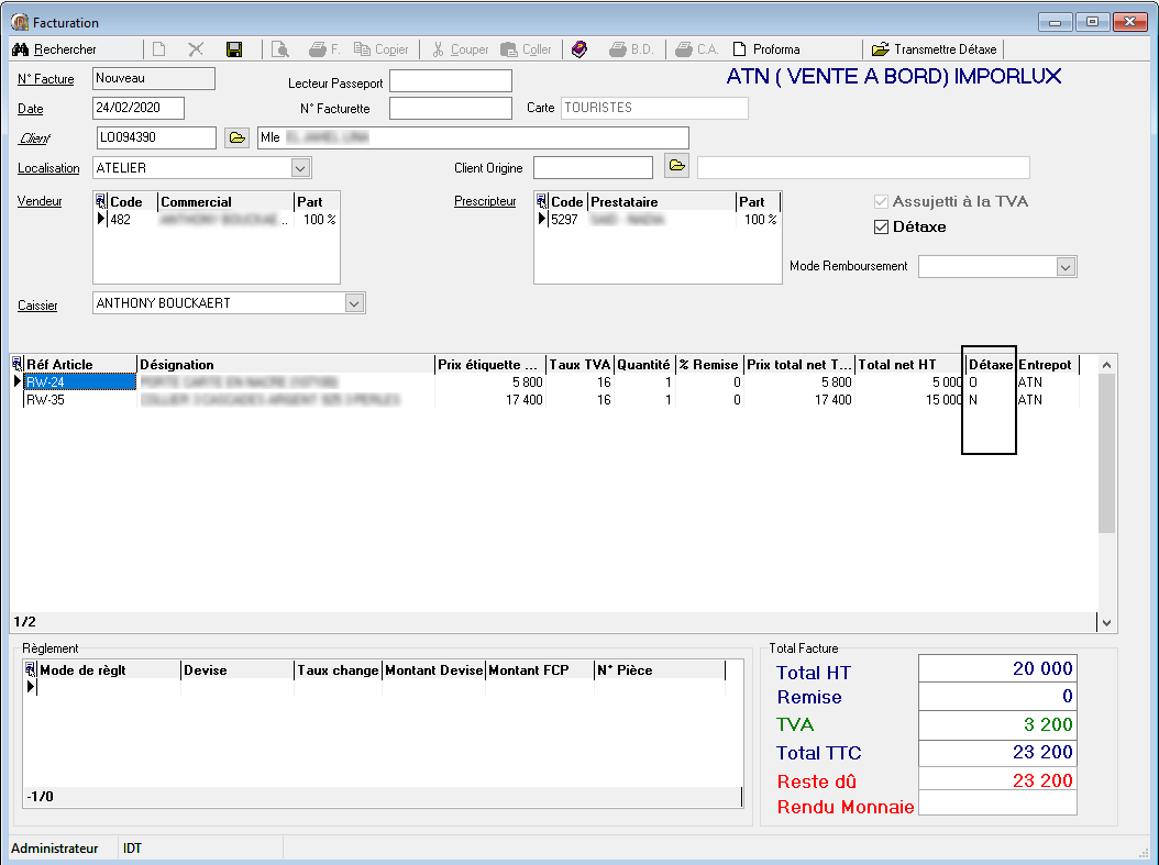 Dans l'exemple ci-dessous, seul l'article RW-24 est à détaxer.