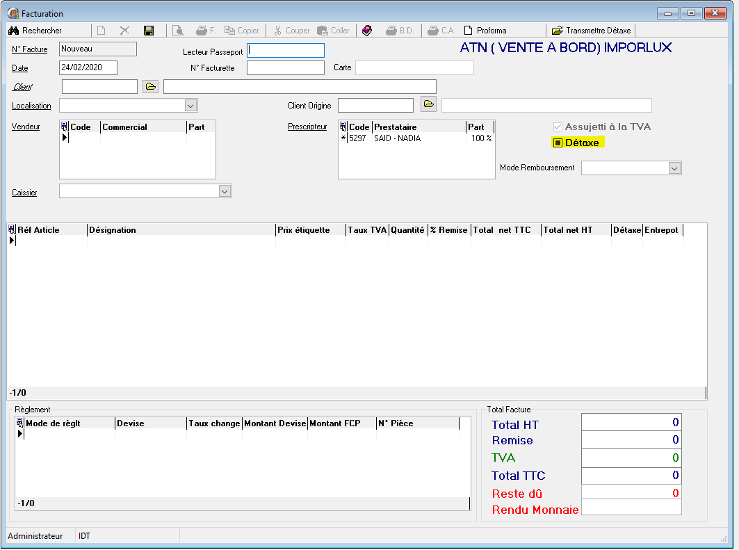 - Cocher la case Détaxe autorisant les articles ajoutés à être détaxés.